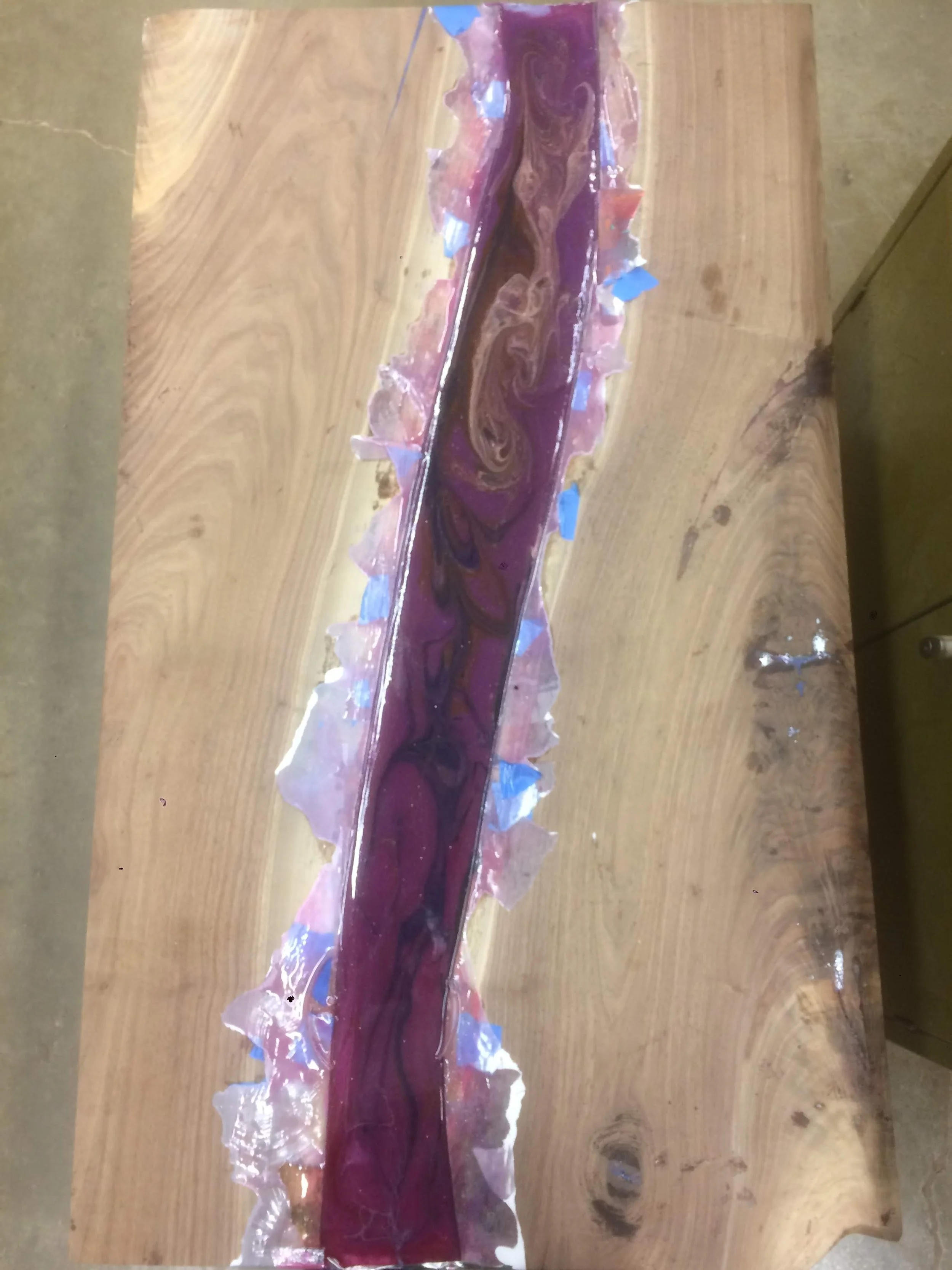 Galaxy chair where I’ve tried something new as Epoxy Resin, and two live edge slabs with Black Walnut for a friend of mine.
