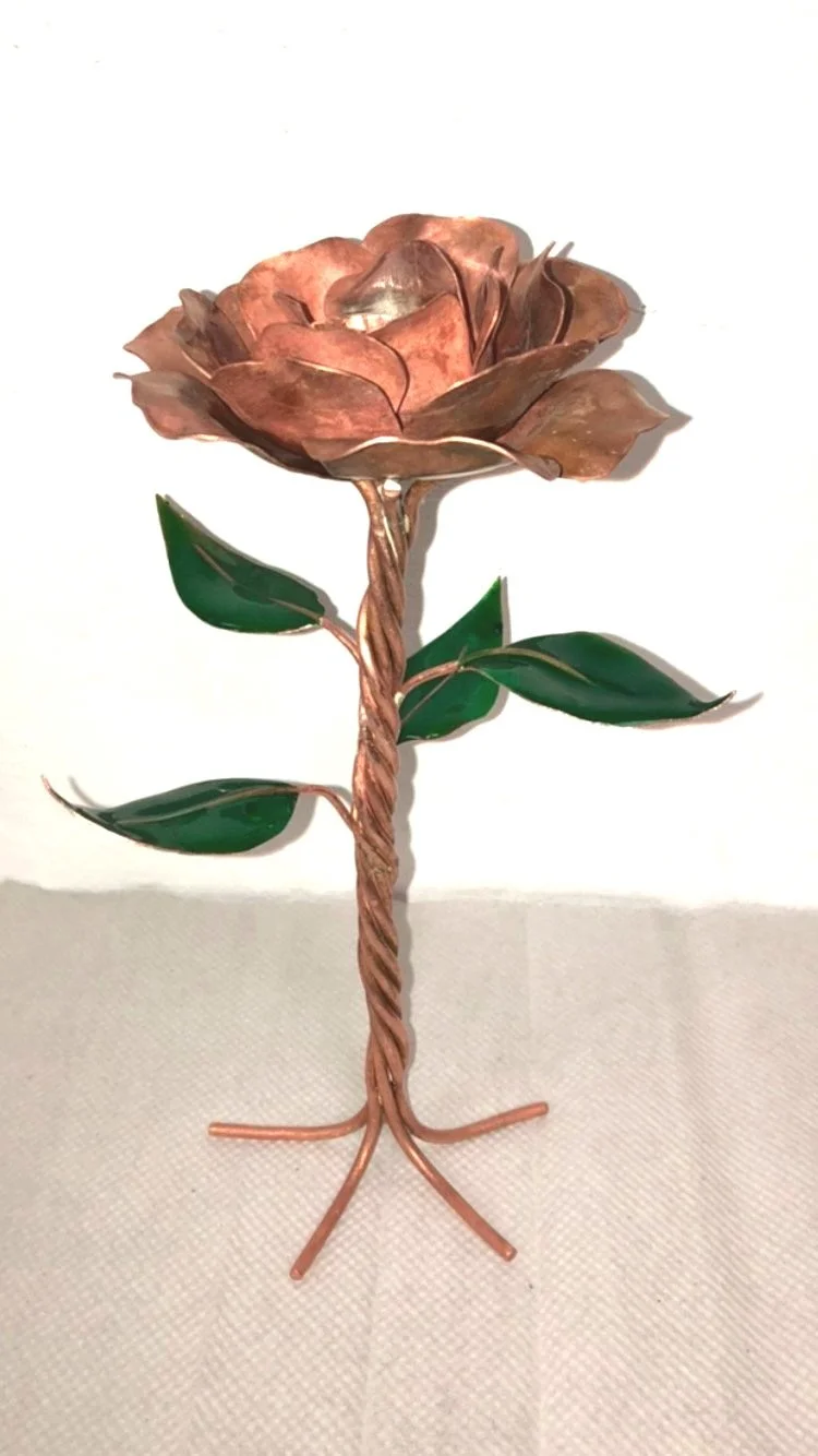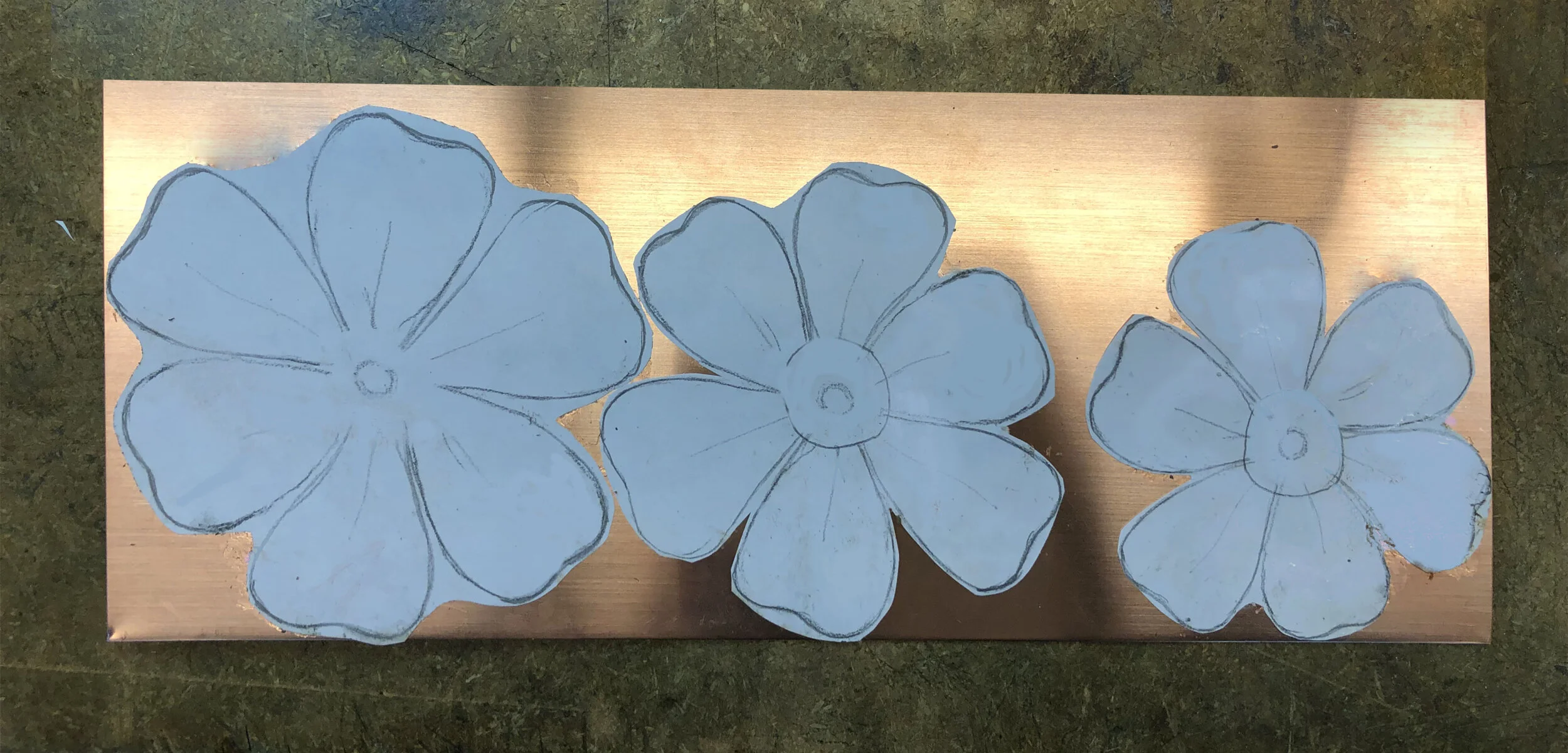 A set of 3 petals with different sizes large medium and small in copper sheet.